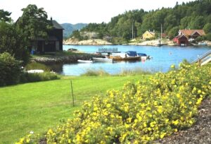 Son-områdets ennå ganske urørte idyll Kjøvangen i all sin sommerprakt. Her fra «indrefileten» nede ved bukta.